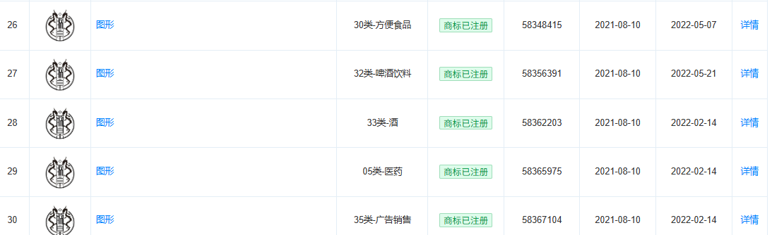 红星资本局在天眼查看到,北京同仁堂兴安保健、北京同仁堂(四川)药业此前在食品、广告销售等多个国际分类下都分别注册了“内廷上用”“朕皇”的相关商标。这两家公司还分别就“内廷上用”“朕皇”相关商标在方便食品、医药等国际分类下申请注册,目前在等待实质审查阶段。