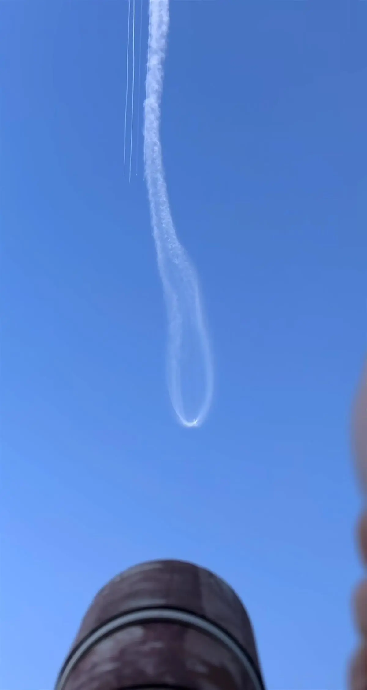 31日上午,火箭摄影师JAMY_GoNg在海南文昌拍下了火箭发射后划过天际变身“太空水母”的一幕。画面当中,火箭在二级发动机开机后开始出现非常明显的拖尾,之后尾流羽化扩散形成“太空水母”。