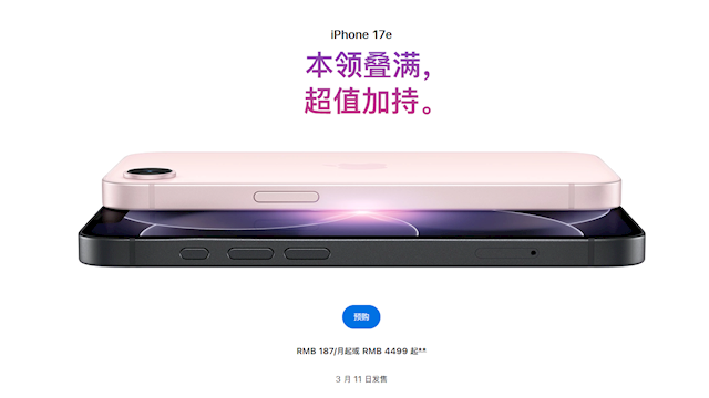 iPhone 17e支持参与国家补贴活动,补贴后起售价降至3999元,成为苹果在售最便宜的iPhone机型。