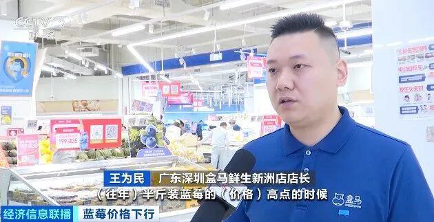 广东深圳盒马鲜生新洲店店长王为民:往年半斤装蓝莓价格高的时候是将近30元,目前是19.9元。对比去年同期销量增长20%。