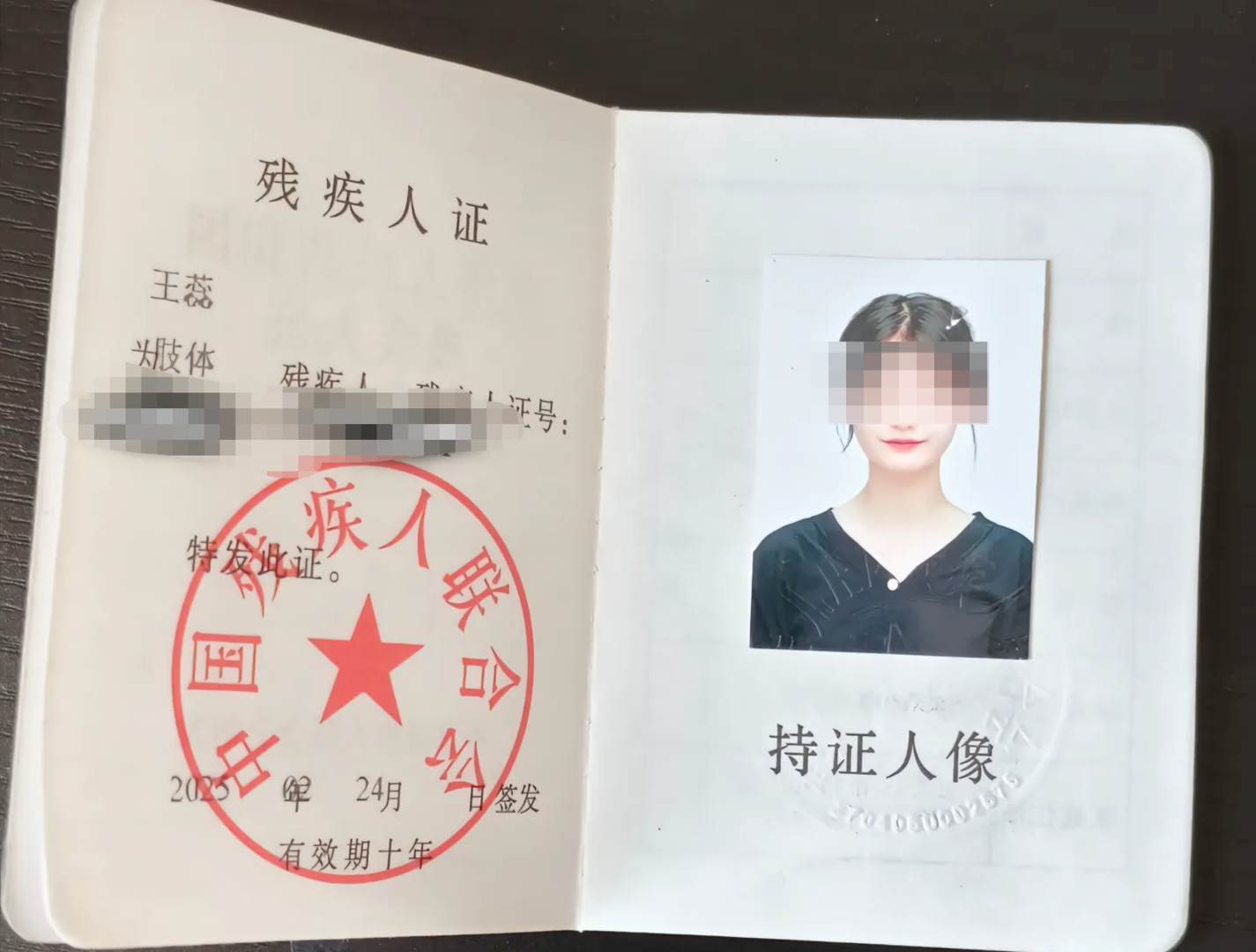 王蕊领取了残疾人证