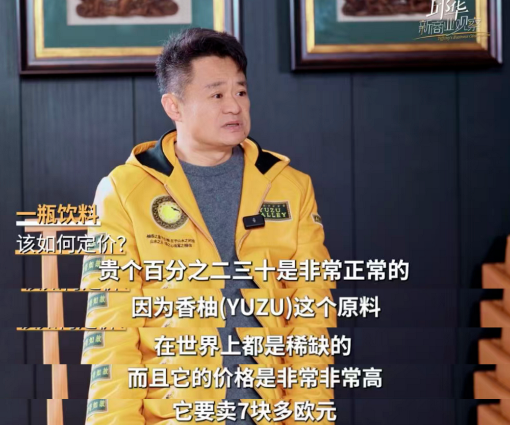 柚香谷创始人宋伟曾在公开采访中提到定价问题,他表示,价格由成本和品牌定位共同决定。香柚原料本身价格昂贵,一个香柚鲜果在欧洲要卖到7欧元,因此宋柚汁的定价比其他饮料贵上百分之二三十是正常的。