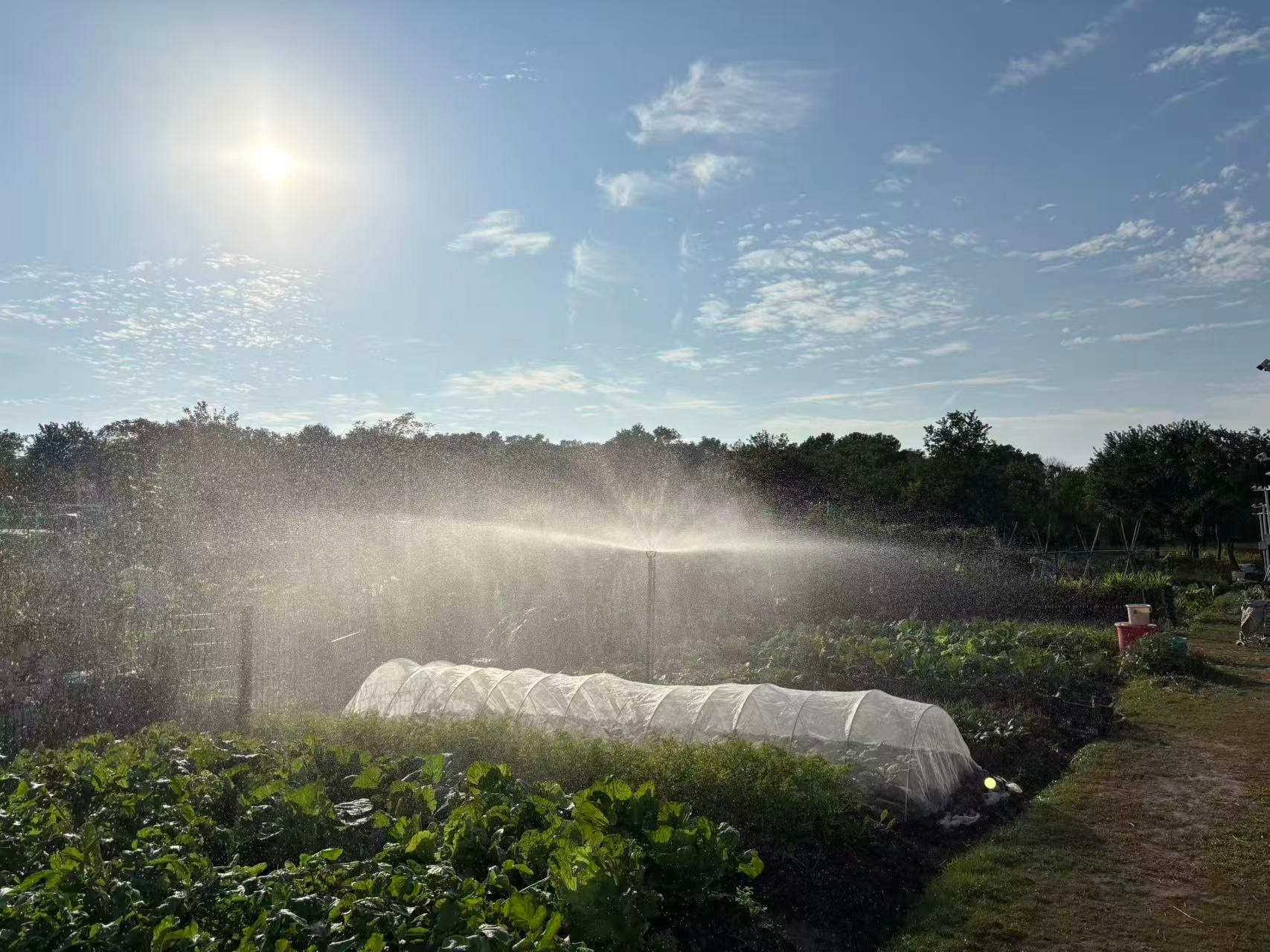 市民付大叔向记者演示了这一操作:在小程序上点击浇水,不到一分钟,喷头便向四周喷水。每点击一次,喷水持续3分钟。如需施肥,则在小程序上操作后,由园区工作人员代为完成。