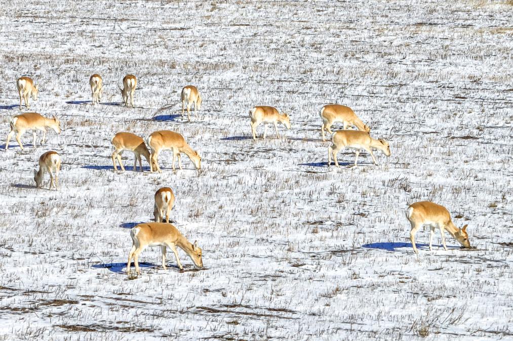 “我们还在黄羊聚集地建立了3个黄羊保护救助站,每站配备2名人员,确保黄羊安全越冬。遇到‘落单’黄羊,工作人员就会把它们抱回救助站。目前全旗已累计救助受伤黄羊433只。”白丽娜说。