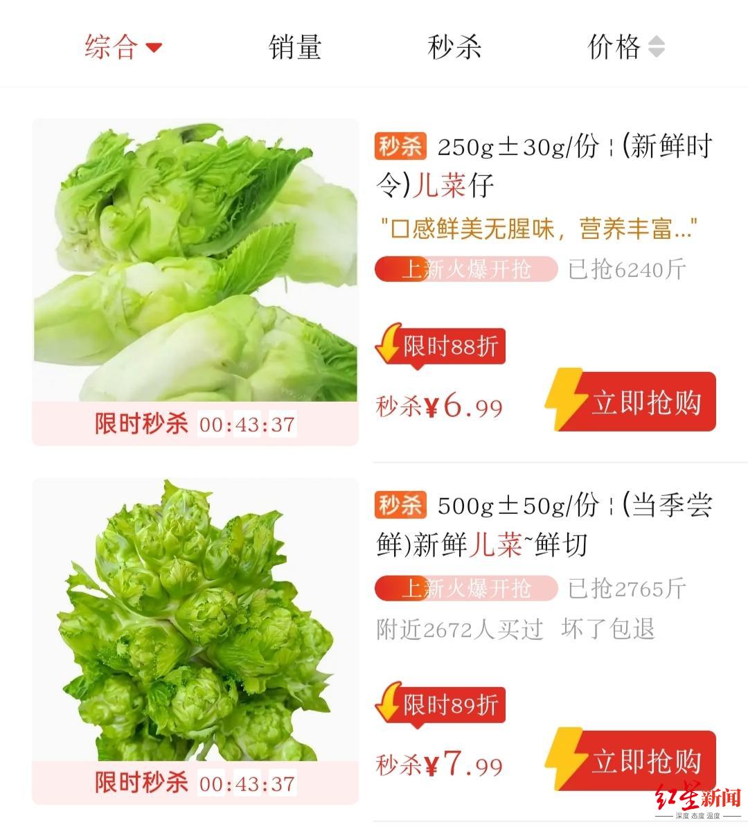 红星新闻记者从海吉星·成都市场了解到,按照往年经验,儿菜刚上市时日均销量约为5吨,大量上市后,日均销量将达到15吨左右,并持续到次年4月。