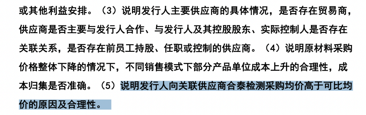 根据申请文件及问询回复:报告期内,农大科技向实际控制人马学文控制的合泰检测采购肥料和部分土壤检测服务,采购均价高于合泰检测对其他客户的平均交易价格。对此,北交所要求说明农大科技向关联供应商合泰检测采购均价高于可比均价的原因及合理性。
