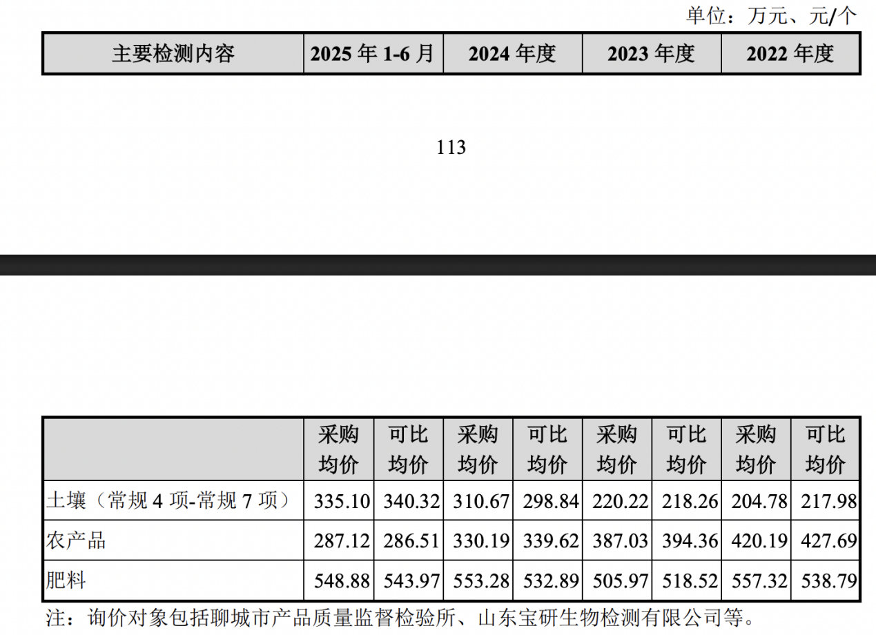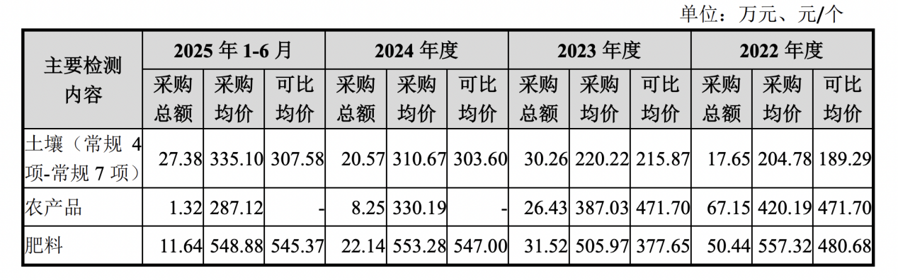 2022年及2023年,公司向合泰检测采购肥料检测服务交易均价高于可比均价,系检测指标数目及提取难度差异所致,公司加权平均检测项数各期均为6项,合泰检测其他客户各期分别为5项和3项,公司肥料检测综合均价高于合泰向第三方销售均价具有合理性。2024年以来,公司肥料检测采购均价接近可比均价。