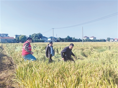 本报讯(李梅 记者 俞佳融)近日,在扬中市新坝镇立新村一处稻田里,原本应该籽粒饱满、迎风挺立的水稻,却出现了不同程度的倒伏情况。种植大户焦急地向人保财险镇江市分公司打来报案电话,随即查勘员迅速行动,协同农业专家赶赴现场,对受灾情况进行实地查勘与损失评估工作。