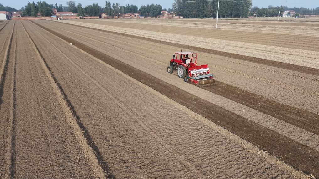 31日清晨,在河北省馆陶县南徐村乡西厂村的农田里,播种机隆隆作响,种粮大户张之旺正抢抓农时,将一粒粒饱满的麦种播入土中。