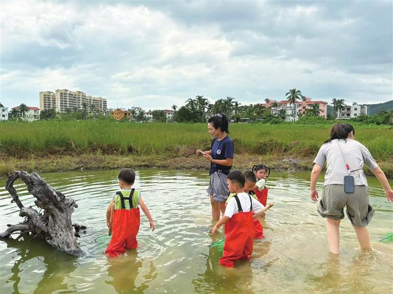 蓝天白云下,一群游客卷起裤脚、手拿小铲,在三亚的田间地头挖地瓜,在稻田里抓鱼虾……孩子们兴奋的欢呼声不时响起——这不再是传统的农村劳动场景,而是如今三亚乡村旅游的新画面。