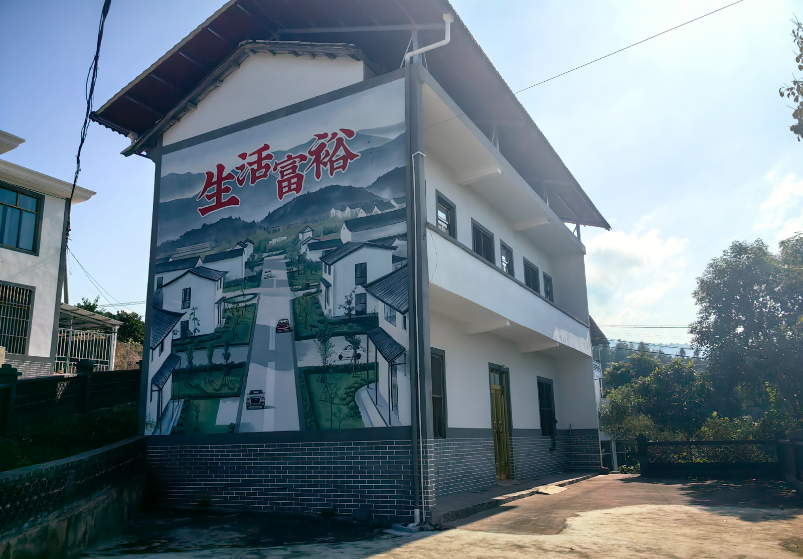 ▲粉刷一新的白墙上,“生活富裕”四个大字熠熠生辉。记者 彭瑜 摄
