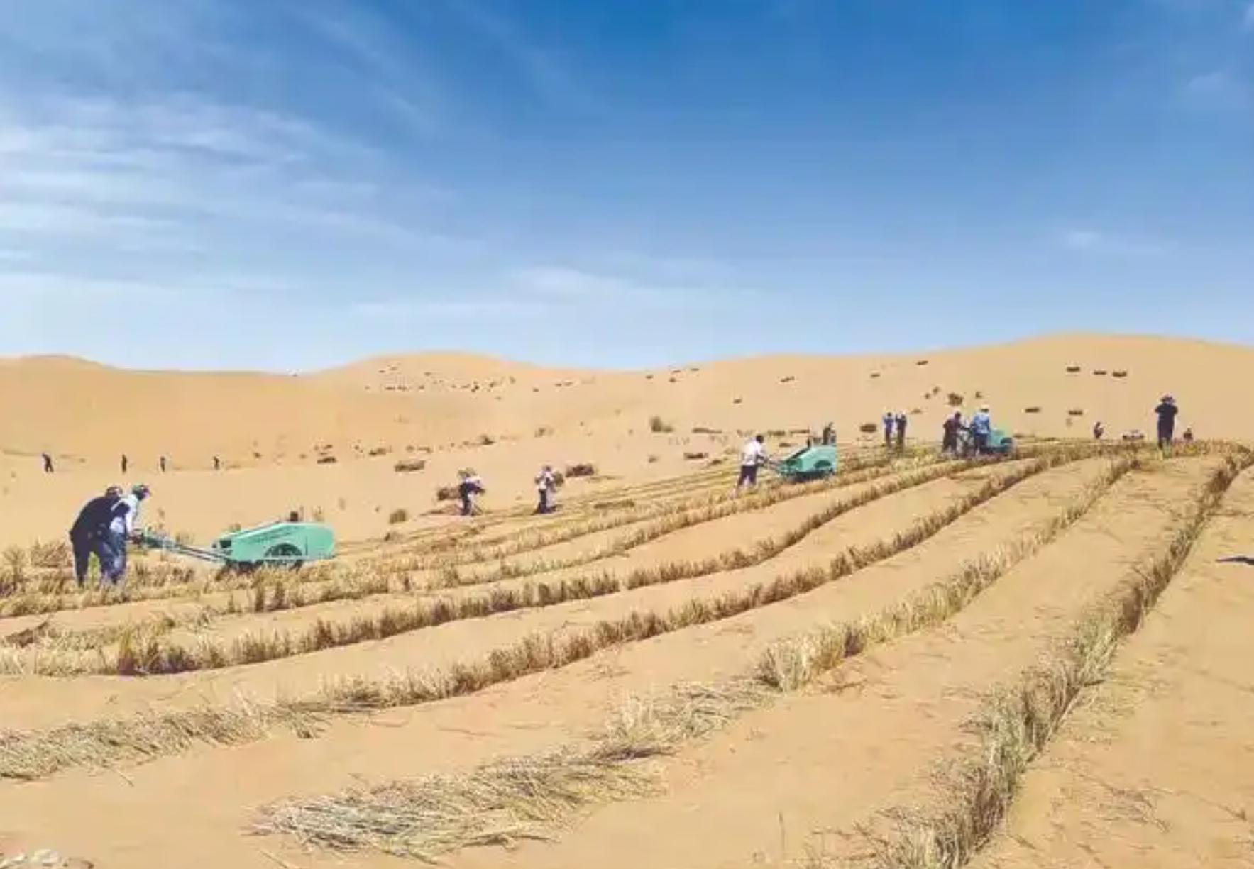 2023年,这片沙漠麦田迎来了大丰收,亩产达294公斤,远超专家的预期。接下来五年,当地计划完成种植规模扩大到5-10万亩,均亩产保底350-400公斤的目标。