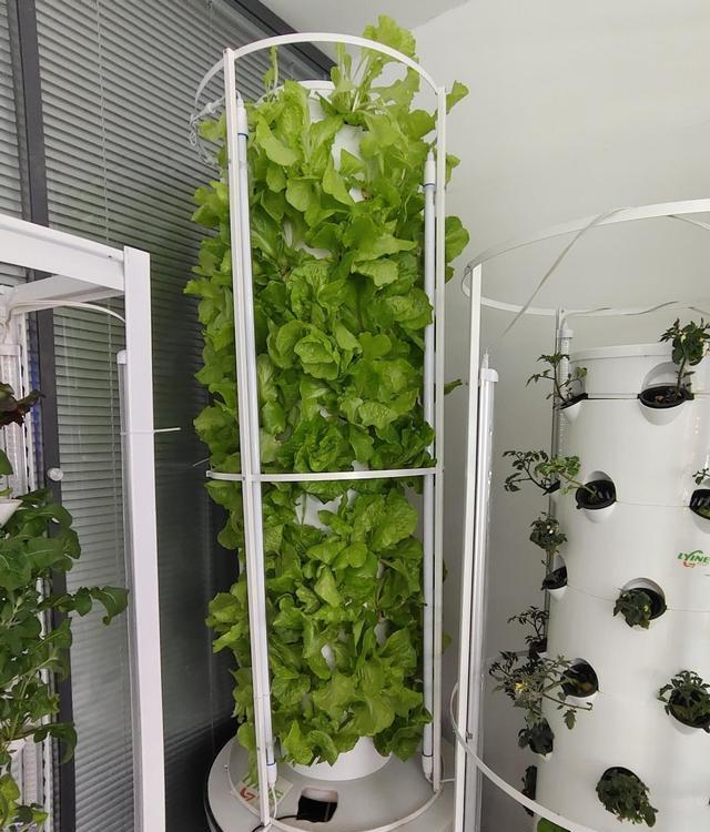 我们用塔系统在室内进行生菜水培,一个月左右就可以收获。水培出来的生菜不仅美观,而且健康。