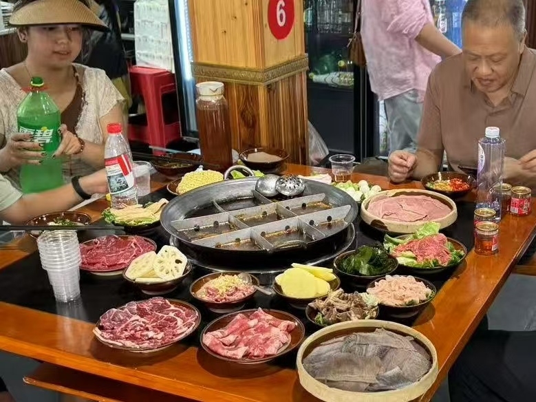▲外地游客品尝洪安的重庆火锅。记者 罗芸 摄