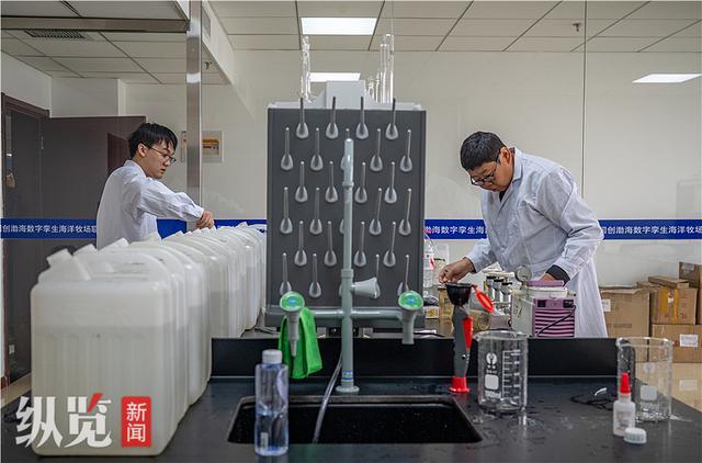 10月24日,渤海数字孪生海洋牧场联合研发中心,技术人员正在检测唐山湾海洋牧场海域的水质。