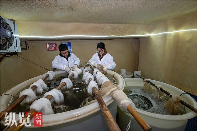 10月24日,唐山海洋牧场实业有限公司冷藏室,技术人员正在查看用于海洋修复的海草种子。