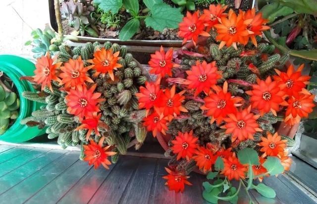 它的枝条就像是手指一样的仙人掌,它可以轻松长到爆盆,花期虽然没有太阳花那么长,但是真的很鲜艳很吸引人啊!