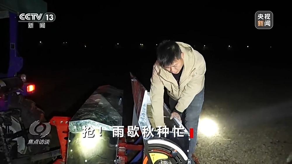 为了尽快把地块翻耕完,最大限度减少秋播推迟带来的影响,当地几乎所有的犁地机都在连夜作业,“换人不换马”。