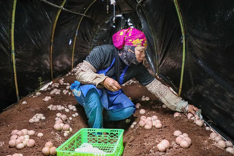 “我把地租给公司,自己又在这做工,一天能挣120元。”村民赵啊兄麻利地采摘竹荪,笑容朴实,“关键是离家近,能照顾老小,比外出打工强多了。”