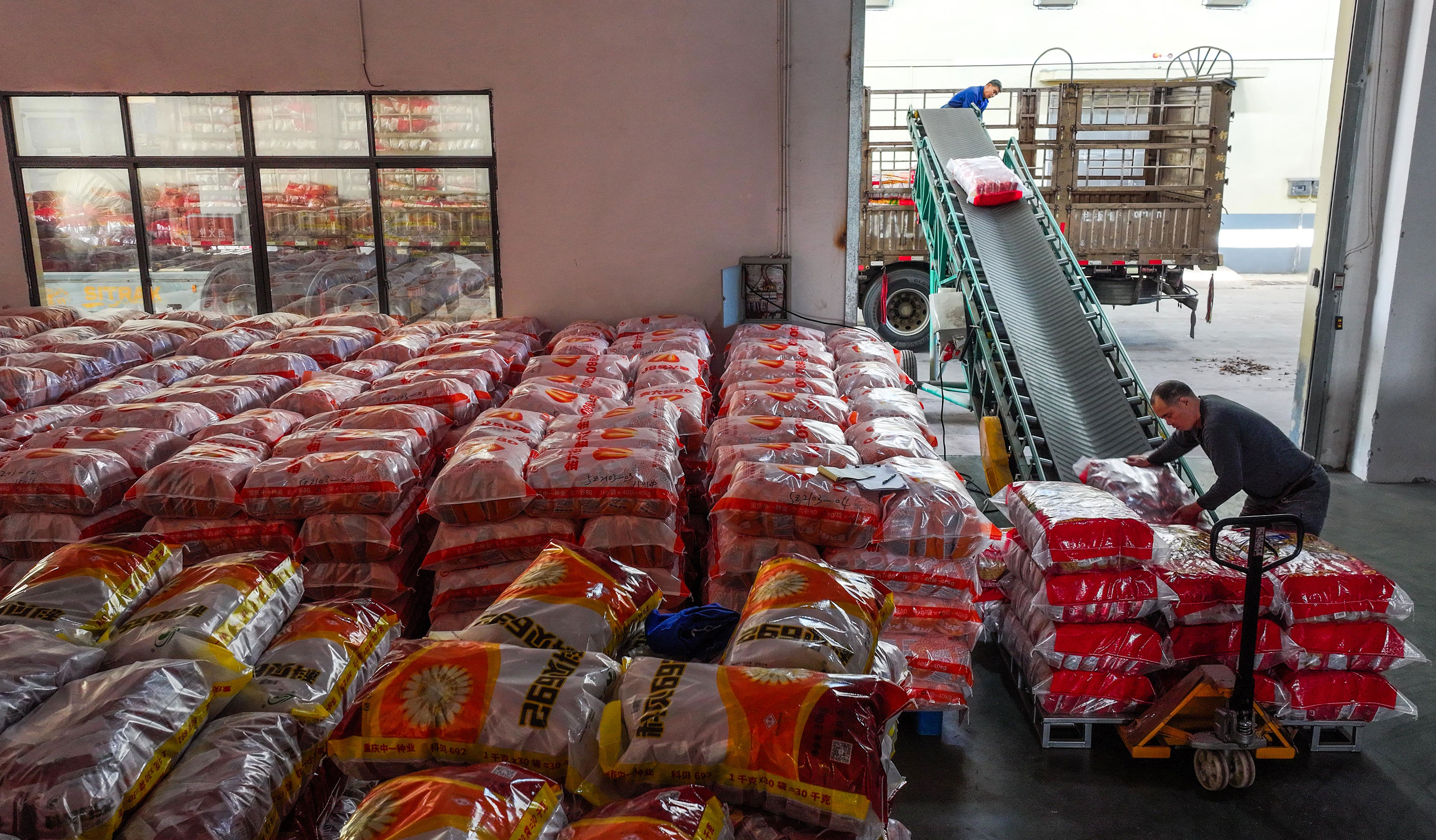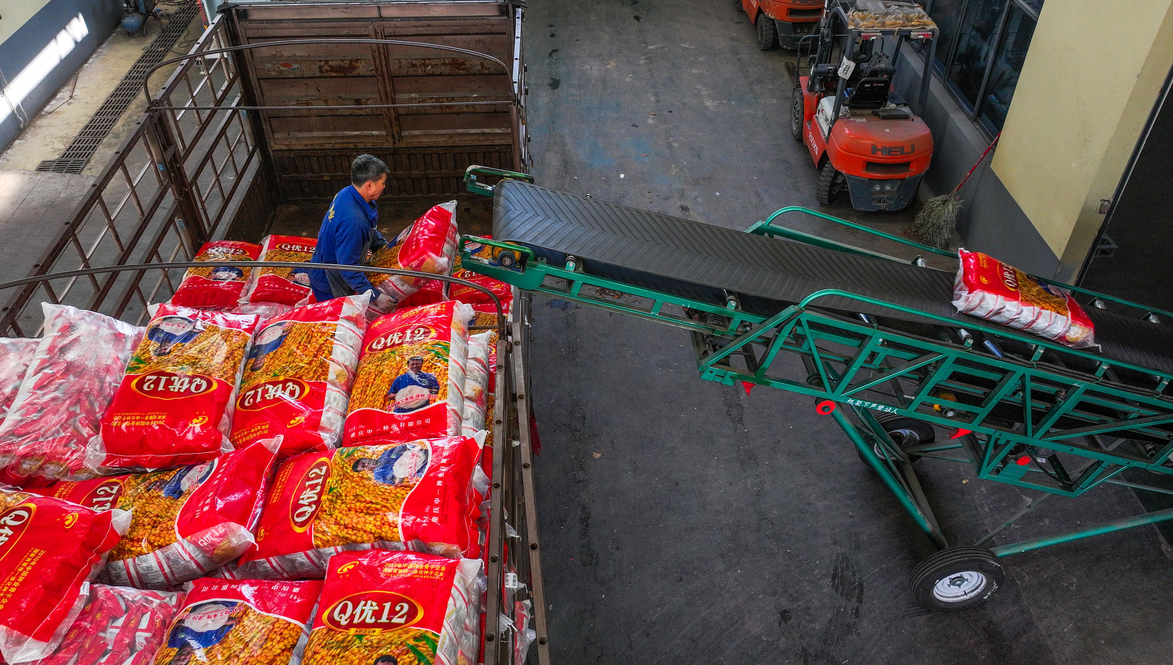 ▲2025年11月21日,垫江县中一种业有限公司,工人正将今年首批制种水稻和玉米的制种种子装车,准备发往云南,为来年的春播春种做准备。特约摄影 龚长浩