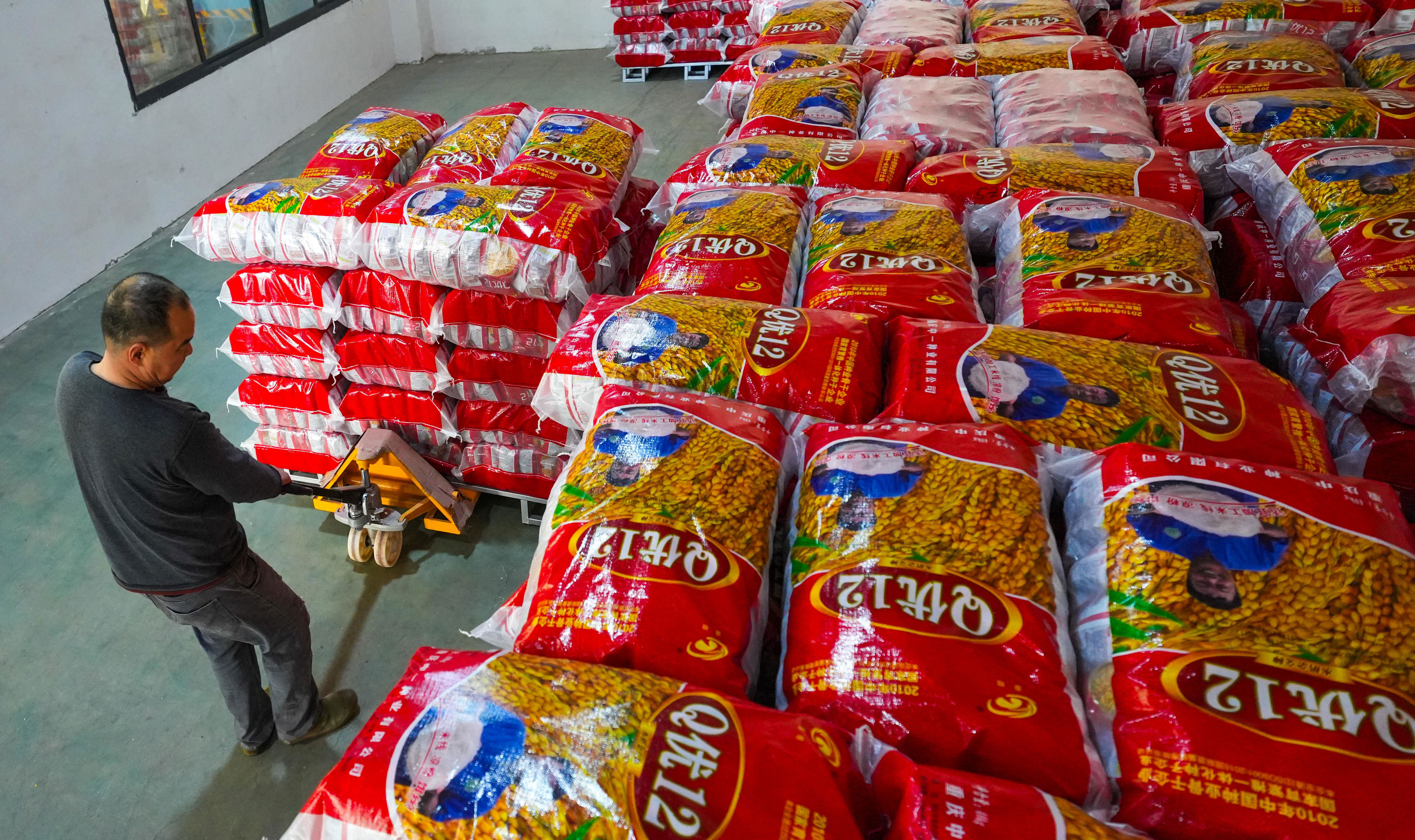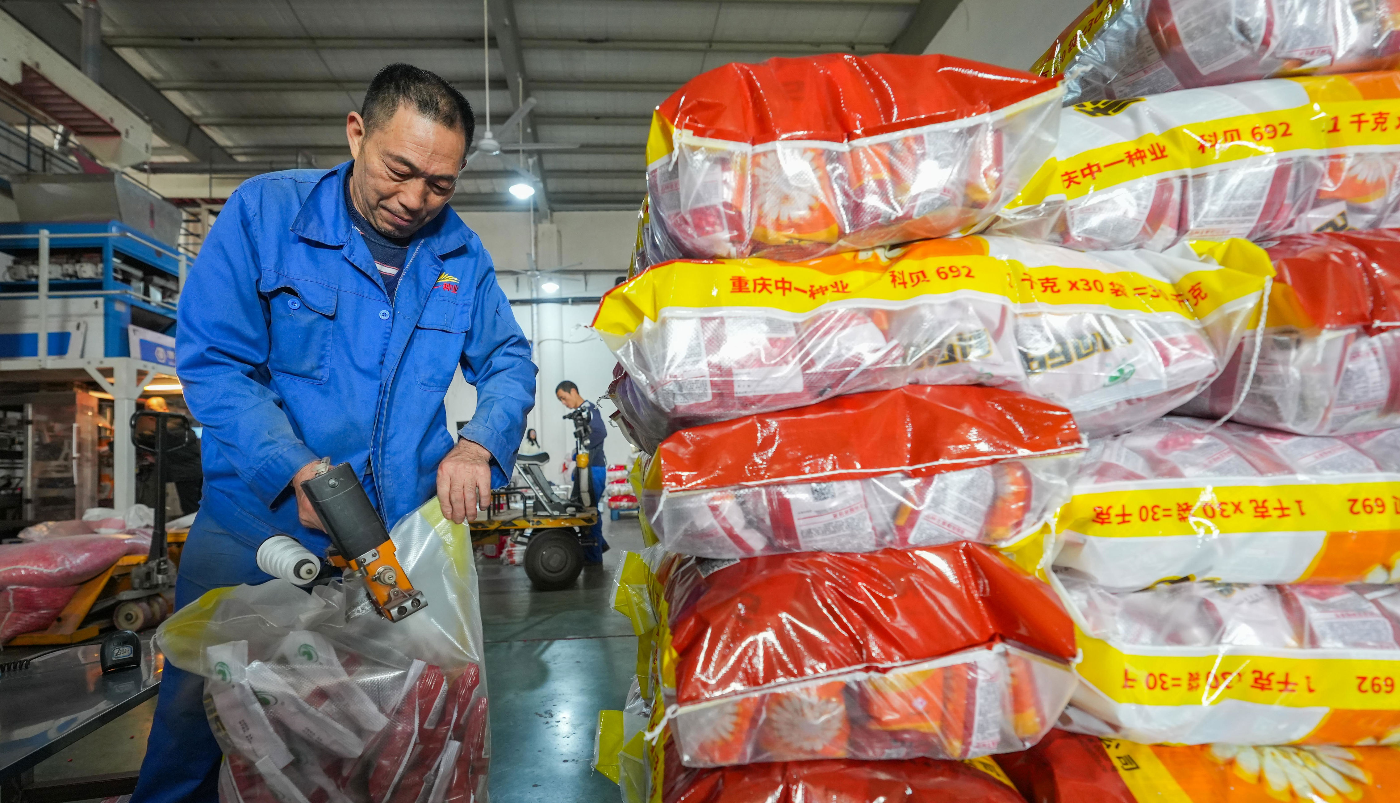 ▲11月21日,垫江县中一种业有限公司,工人正将今年首批制种水稻和玉米的制种种子进行封装,准备发往云南,为来年的春播春种做准备。特约摄影 龚长浩