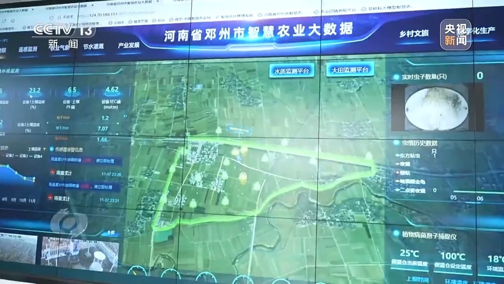 在邓州的智慧农业中心,记者看到,智慧平台正实时监控田地的湿度、温度等情况。