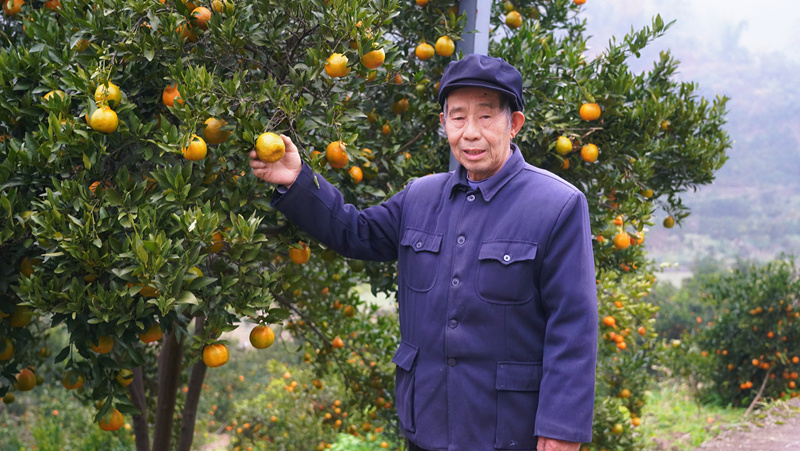 午后,橘林被染成金色。赵立勤和范国忠两位老人并肩走在村道上。他们的脚步很慢,但每一步都踏实有力。路旁,几乎家家户户房前屋后都种着椪柑树。