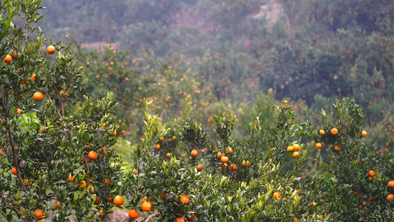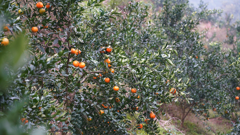 后面,他们凑钱从浙江引进种,用最笨的办法去观察、记录、尝试......一点点摸索椪柑的习性。再加上赵立勤的钻研,终于水滴石穿。如今,范国忠的四五亩果园郁郁葱葱,今年预计产量超万斤。“整得还可以,大家都觉得安逸。”他笑着说,皱纹如年轮般在脸上漾开。