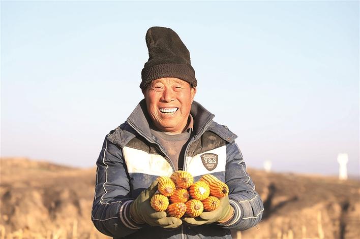 孟家坪乡贺家沟种粮大户张金全看着金灿灿的玉米心里乐开了花
