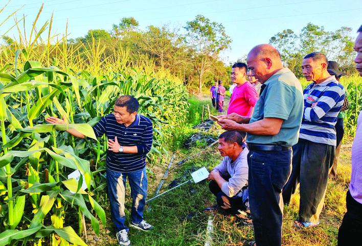 种植户在田间学习鲜食玉米优新品种高效栽培技术。 惠州日报记者王开尧 卢泓宇 摄