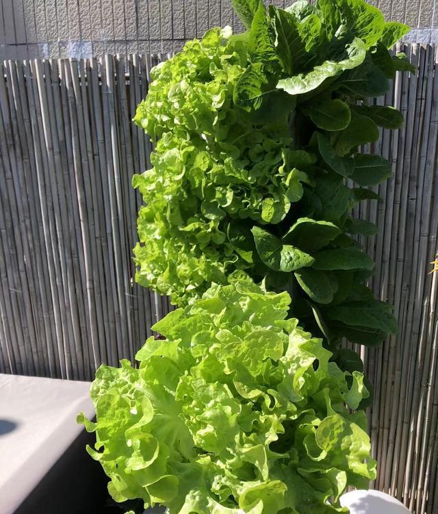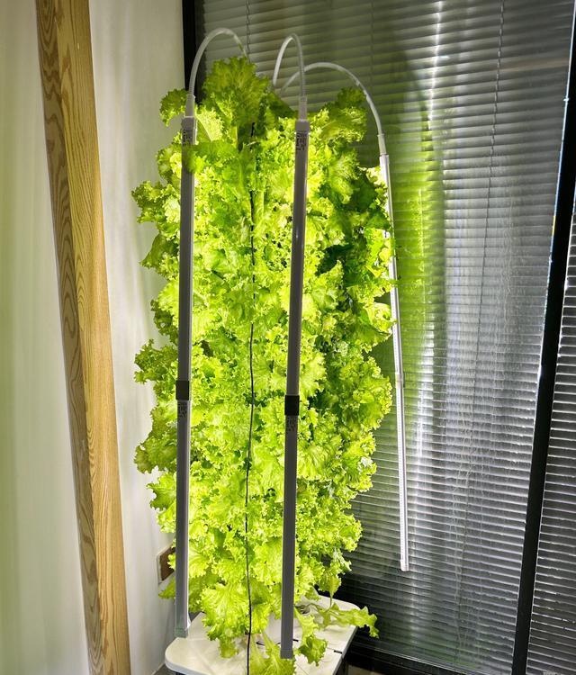 也推荐种生菜。生菜种的人非常多,算是很受欢迎的水培蔬菜之一,很多人都尝试过用奶茶杯水培,但效果都很一般。可以选择用水培立柱系统来种,大概30多天就能收获。对于刚开始水培的人来说,生菜是一个既简单又能快速看到成果的蔬菜!