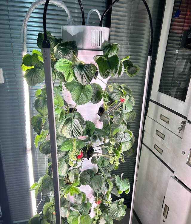 草莓是一种种起来相对麻烦的水果,需要额外关注一些。通过水培立柱种植时,草莓花需要人工授粉,这样才能结出果实。