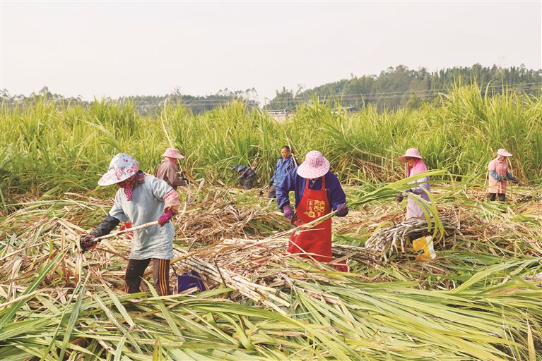 自该基地种植甘蔗以来,每到用工时节,家住附近的群众就来到基地务工,既能照顾家庭又能增加家庭收入。