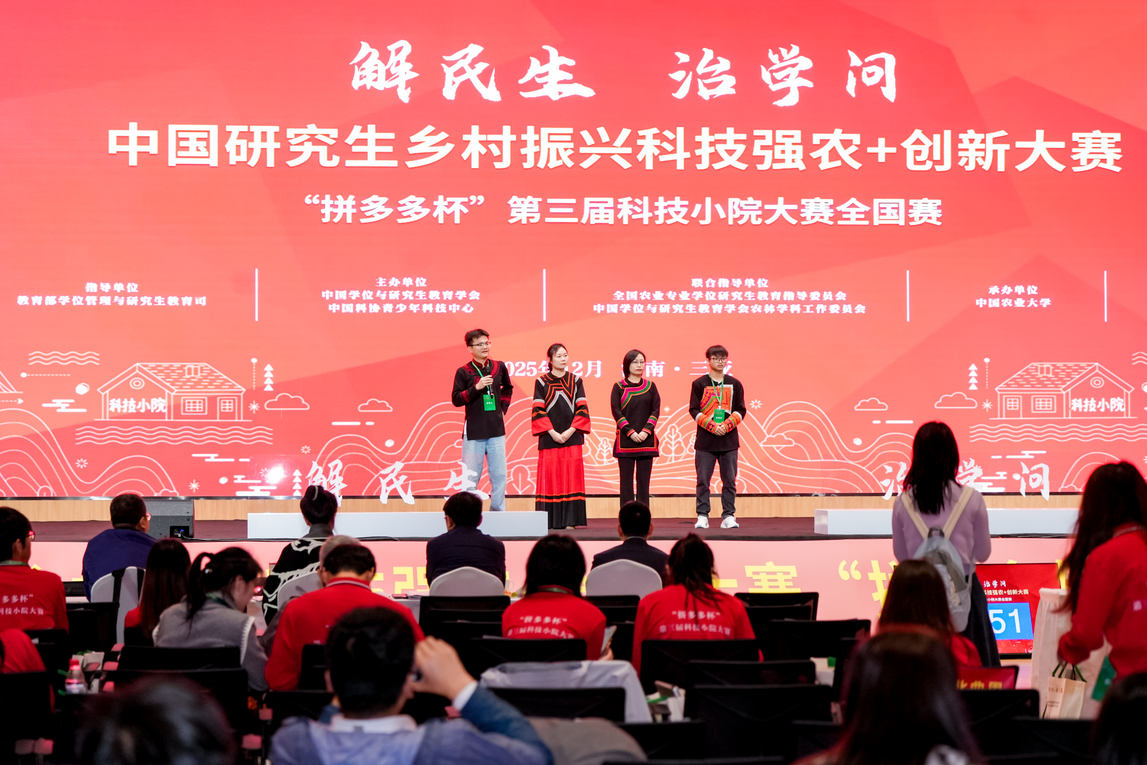 中国研究生乡村振兴科技强农+创新大赛“拼多多杯”第三届科技小院大赛总决赛近日在海南三亚闭幕。大赛以“解民生、治学问”为主题,引导广大研究生将课堂理论转化为解决农业农村实际问题的创新成果,为乡村振兴和农业强国建设提供坚实的人才与科技支撑。