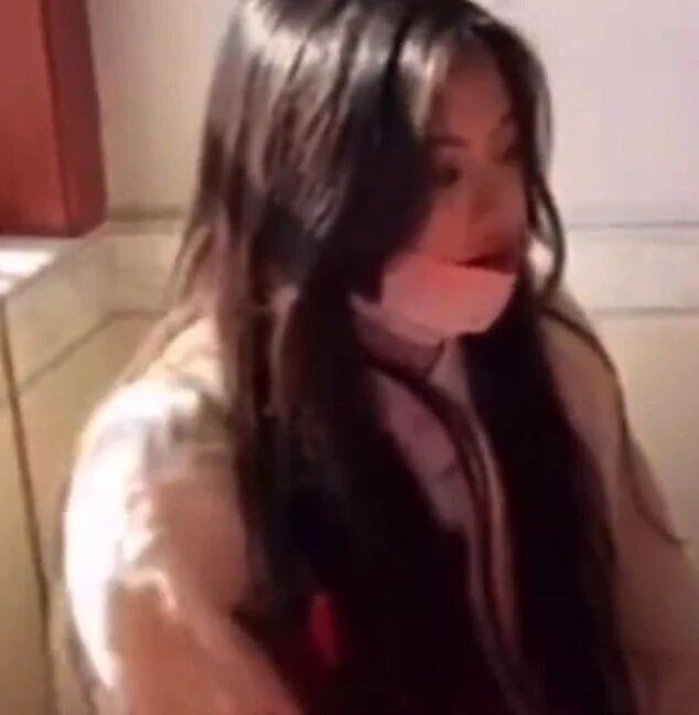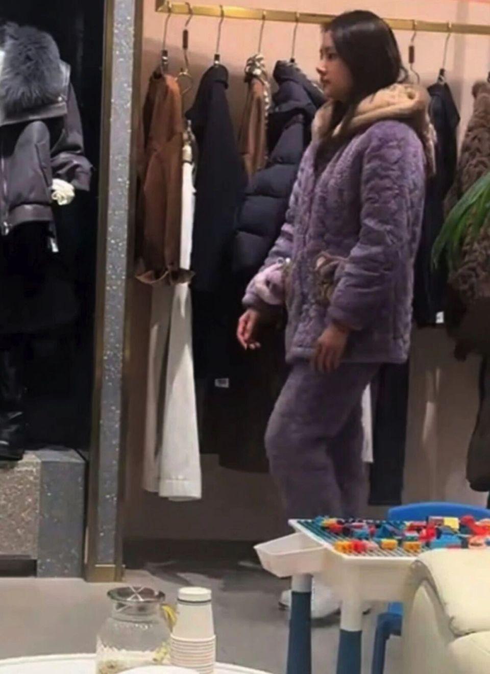 她不光穿着这套紫色睡衣,还穿出去逛街,关键是不戴口罩不戴帽子素颜示人。