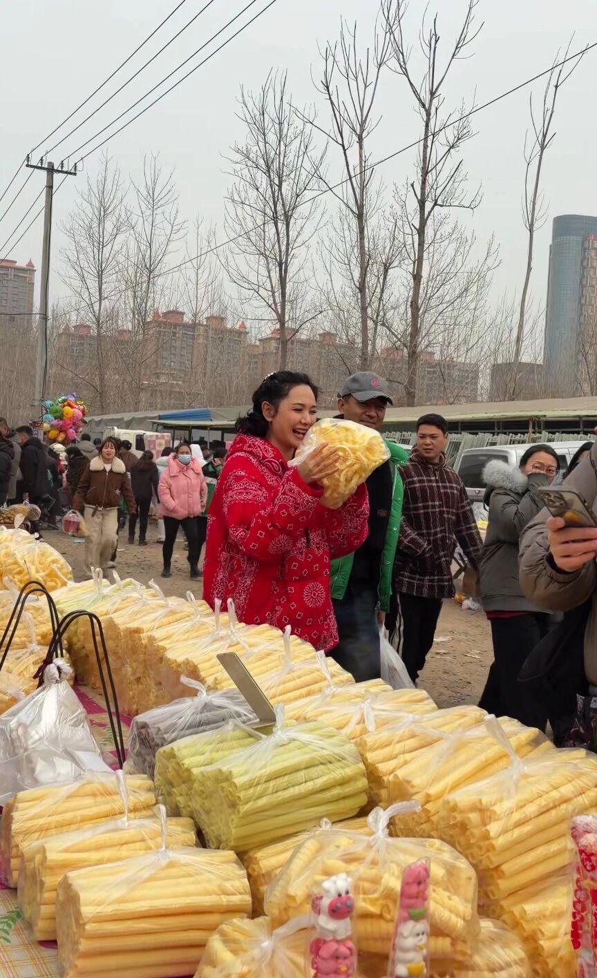 尤其是买一些农村必备的过年小零食爆米花、米花糖、花生瓜子时,“村感”增倍,衬得一旁郭晓东都没有那么“村”了。