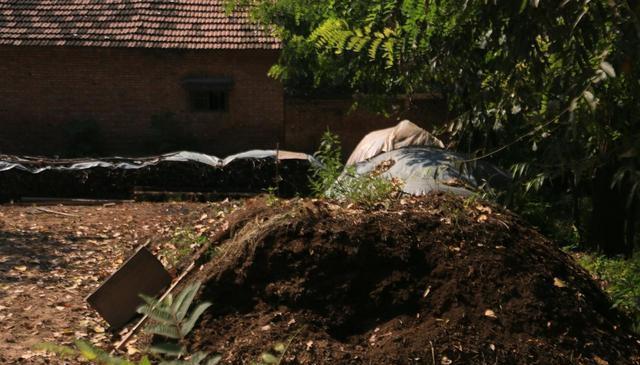 当然,如果觉得杂草树叶堆肥发酵慢,可以在堆放材料的时候,喷洒的水换成EM菌发酵剂稀释液,发酵速度至少可以提高一倍。