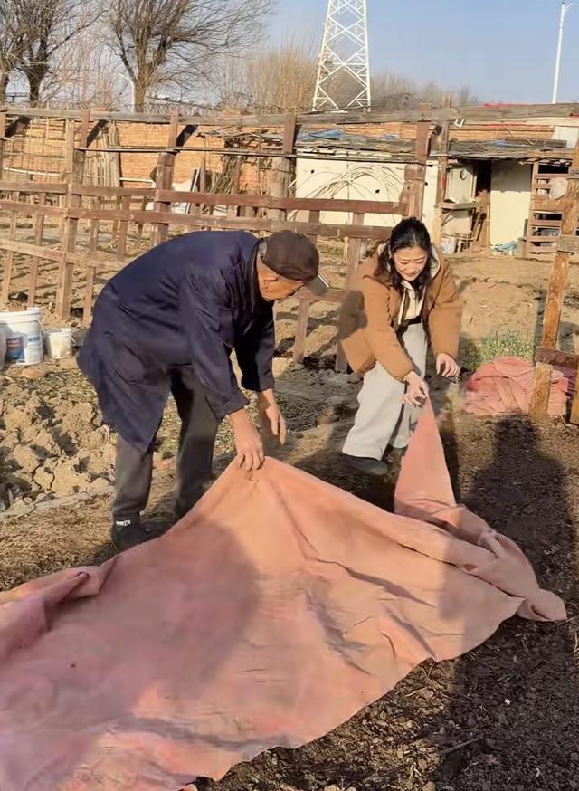 最后梅婷和爷爷不仅种上了小白菜,还搭起了篷布、盖上了一层塑料布,形成了一个小型的手搓大棚。因为现在的天气还是有点冷,所以裹上一层薄膜就会让小白菜长得更好。