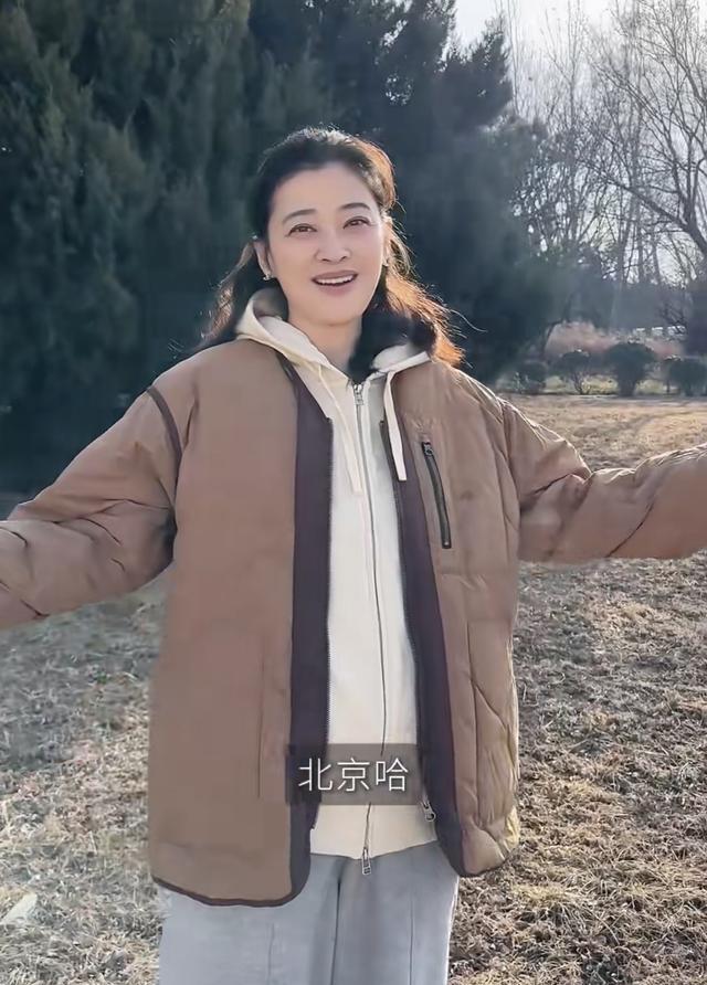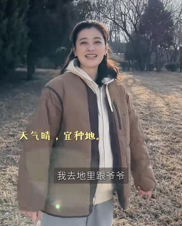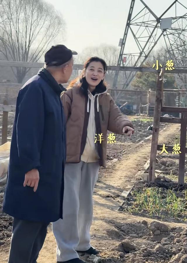 梅婷在难得的休息日,陪着孩子爷爷一起种菜。当天她穿了一件连帽的卫衣、搭配了棕色棉服、阔腿裤,很休闲舒适的打扮也接地气。