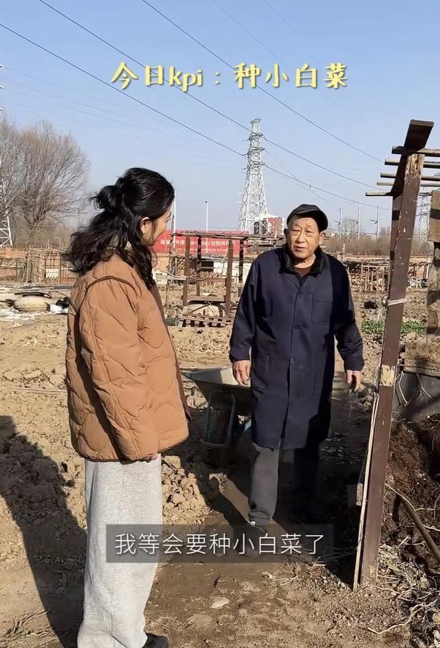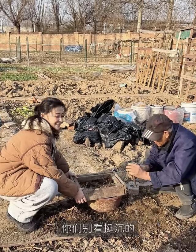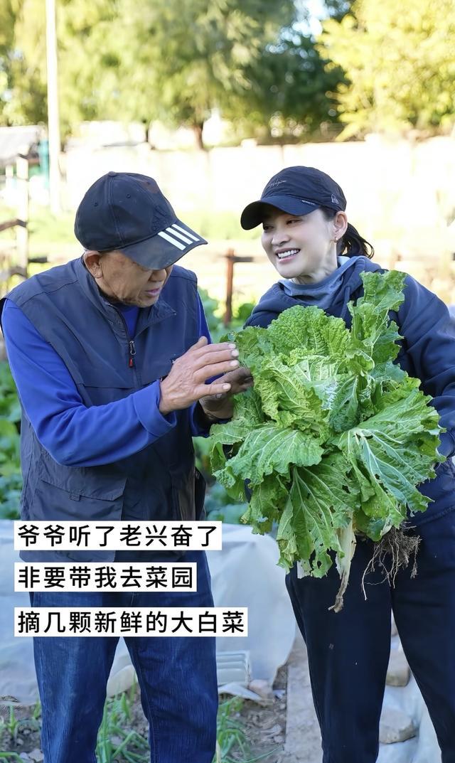 51岁的梅婷,身上丝毫没有城里人的矫情。她陪着爷爷一起种菜,不仅亲自弯腰翻土、还学着爷爷的样子筛土,也不怕弄得满身都是泥土。