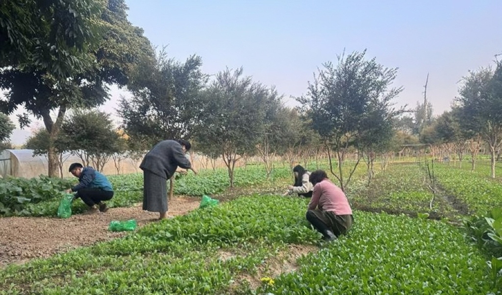 新华社济南3月27日电 春天的田野,处处生机盎然。山东省济南市历城区的“章灵丘的田园”里,不少家长化身“都市农夫”,带着孩子体验种瓜种菜的乐趣。