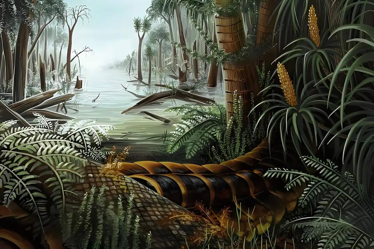 令人意想不到的是,巨虫时代的地球上,并没有能够分解倒地树木的生物。因此,大量树木枯萎倒地后,只能被深埋地下,年复一年、层层累积,最终形成了我们如今所使用的煤炭——这也正是“石炭纪”名称的由来。