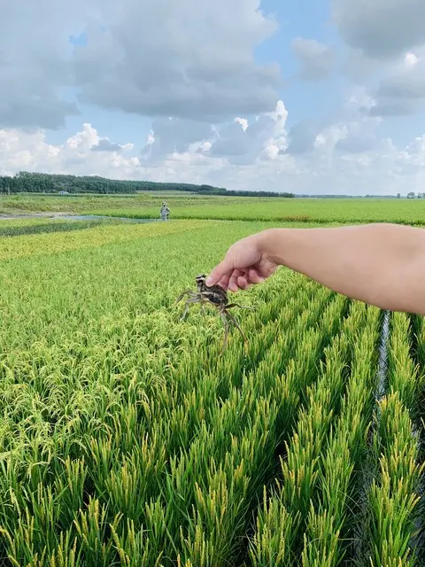 盘锦大米,是来自湿地的“贵族”。这片退海之地形成的盐碱地,加上充足的光照,赋予了大米独特的性格。盘锦大米最著名的标签是“蟹稻共生”,在稻田里养蟹,形成天然的生态循环。