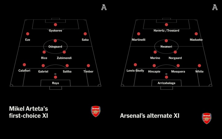 直播吧09月19日讯 The Athletic撰文列出了阿森纳的两套首发,展示了球队的阵容深度,全队总身价13.3亿欧。此外,TA还预测了一下本周末阿森纳出战曼城时,首发11人可能的布阵。