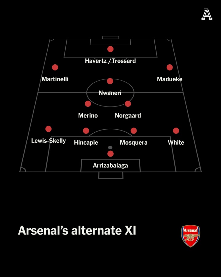 前锋:马丁内利、哈弗茨(或特罗萨德)、马杜埃凯