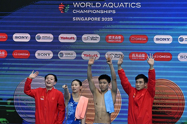 7月26日傍晚,在新加坡水上运动中心产生了2025世界泳联游泳锦标赛跳水项目的第一块金牌。由曹缘、陈艺文、陈芋汐、程子龙组成的中国跳水队,以466.25分领先第二名超过40分的绝对优势,夺得了混合团体决赛的冠军,为中国队迎来开门红。尽管是意料之中的冠军,但这枚非奥项目金牌的获得,表明了中国队在本届世锦赛上拿出了当仁不让包揽全部13金的态势。