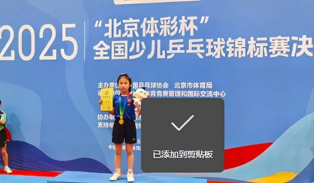 从7岁首次参加“国球舍杯”公益联赛夺冠,到如今全国锦标赛登顶。