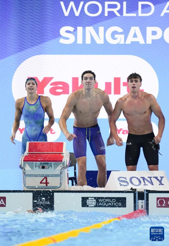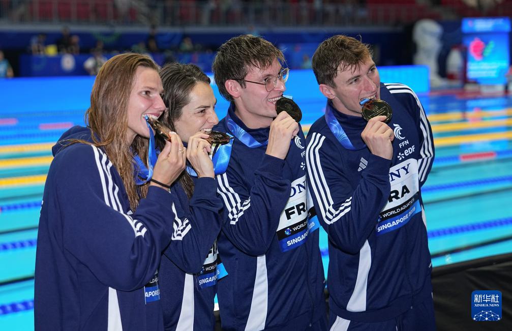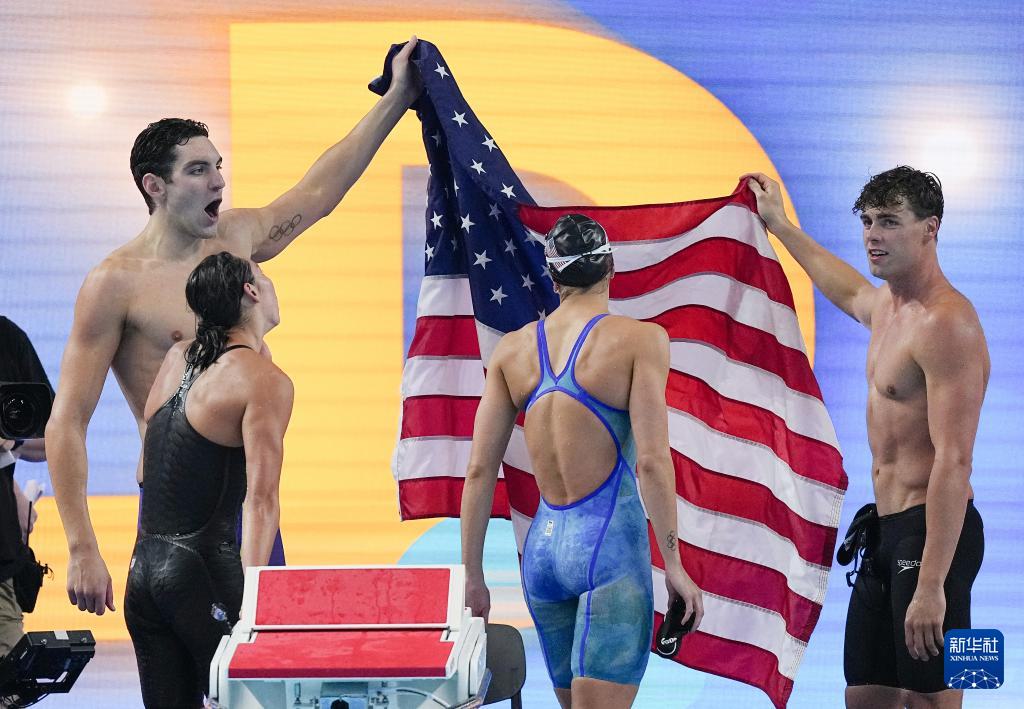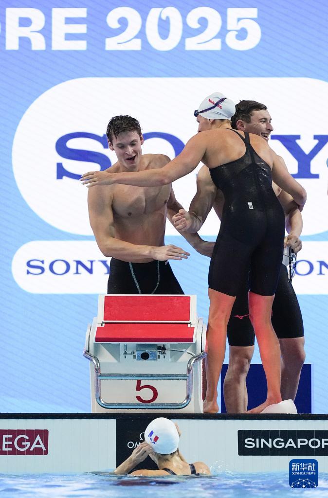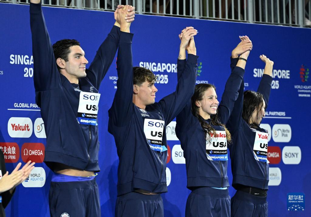 当日,2025年世界游泳锦标赛游泳混合4x100米自由泳接力决赛在新加坡举行。
