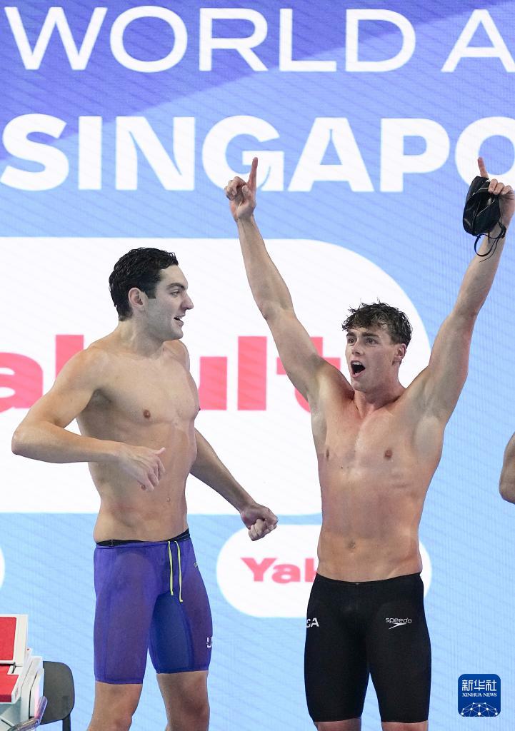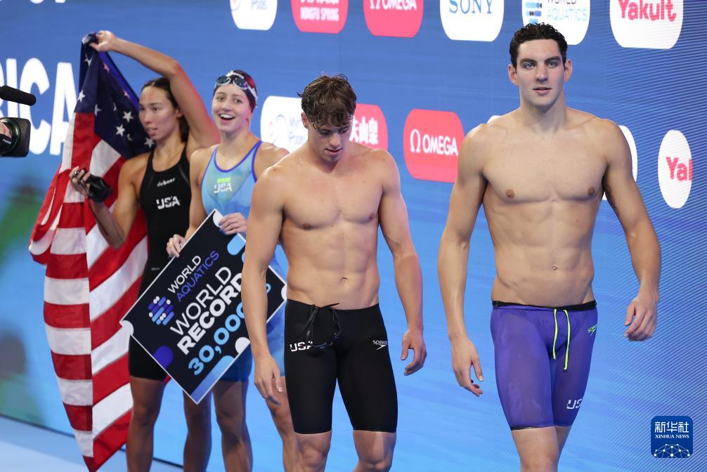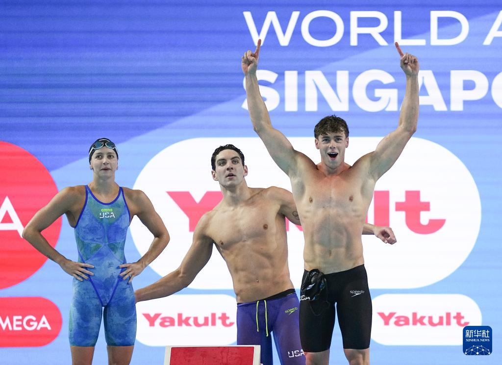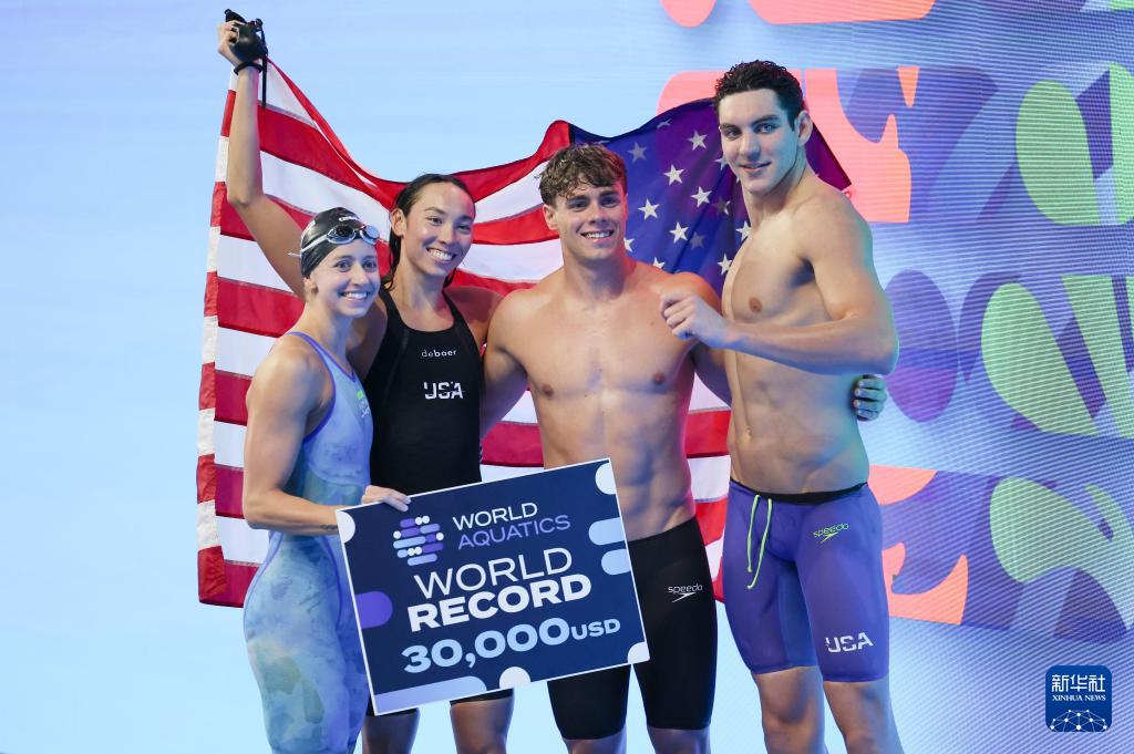 当日,2025年世界游泳锦标赛游泳混合4x100米自由泳接力决赛在新加坡举行。