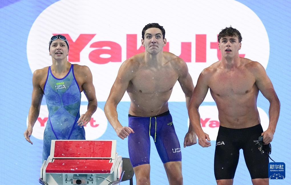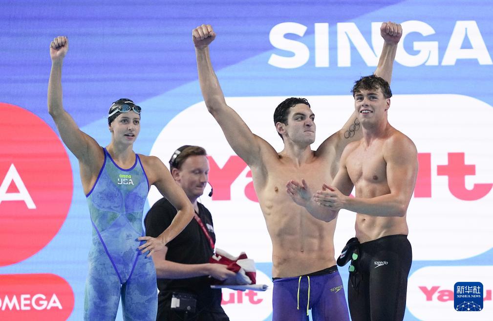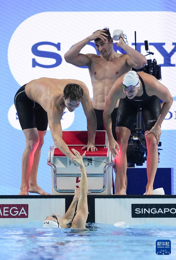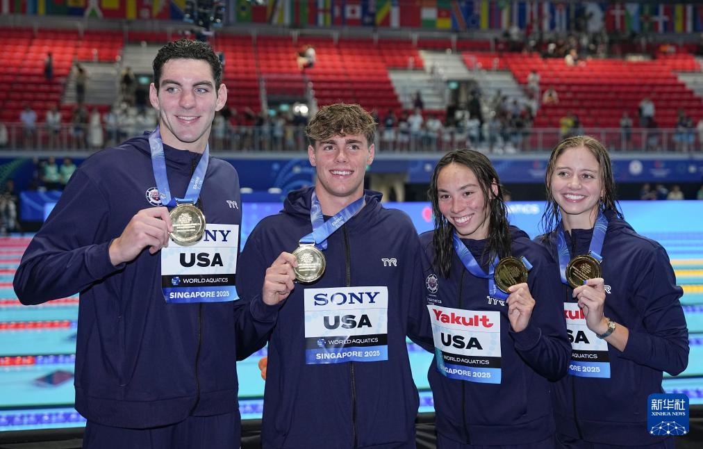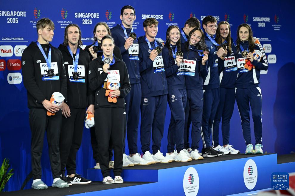 当日,2025年世界游泳锦标赛游泳混合4X100米自由泳接力决赛在新加坡举行。